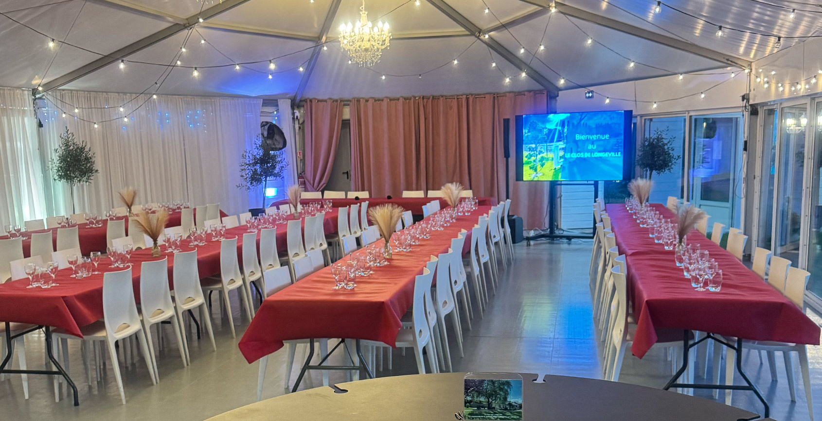 Le Clos de Longeville propose plusieurs espaces permettant d’organiser une journée d’étude, un séminaire, un cocktail ou une soirée d’entreprise, avec une grande souplesse d’aménagement et une restauration intégrée.